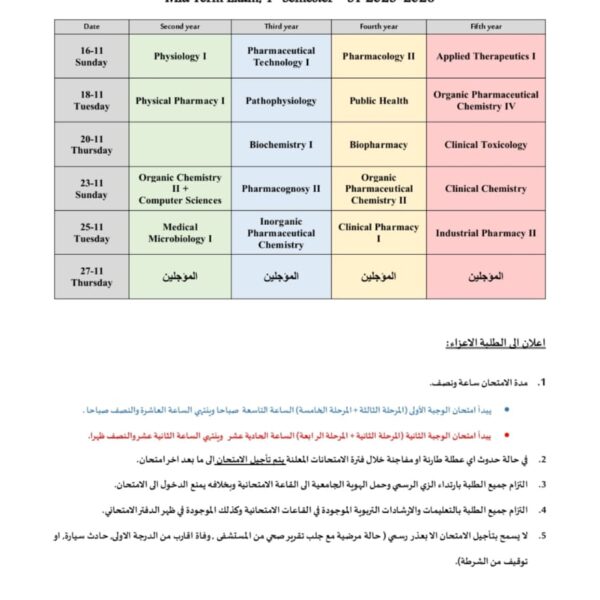 جدول امتحان النظري للمراحل الثلاثة لقسم التمريضAsraa.w89@gmail.com11/10/2025جدول امتحان النظري للمراحل الثلاثة لقسم التمريض ... اقرأ المزيد